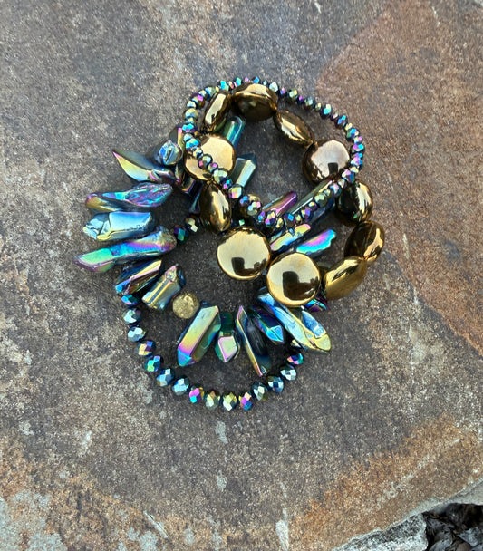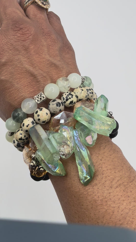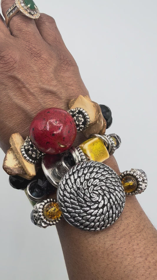 All of our pieces are one of a kind, hand crafted statement pieces, guaranteed to have an array of beautiful stones, charms, beads, metals and upcycled treasures to create a look that is unique just for you!