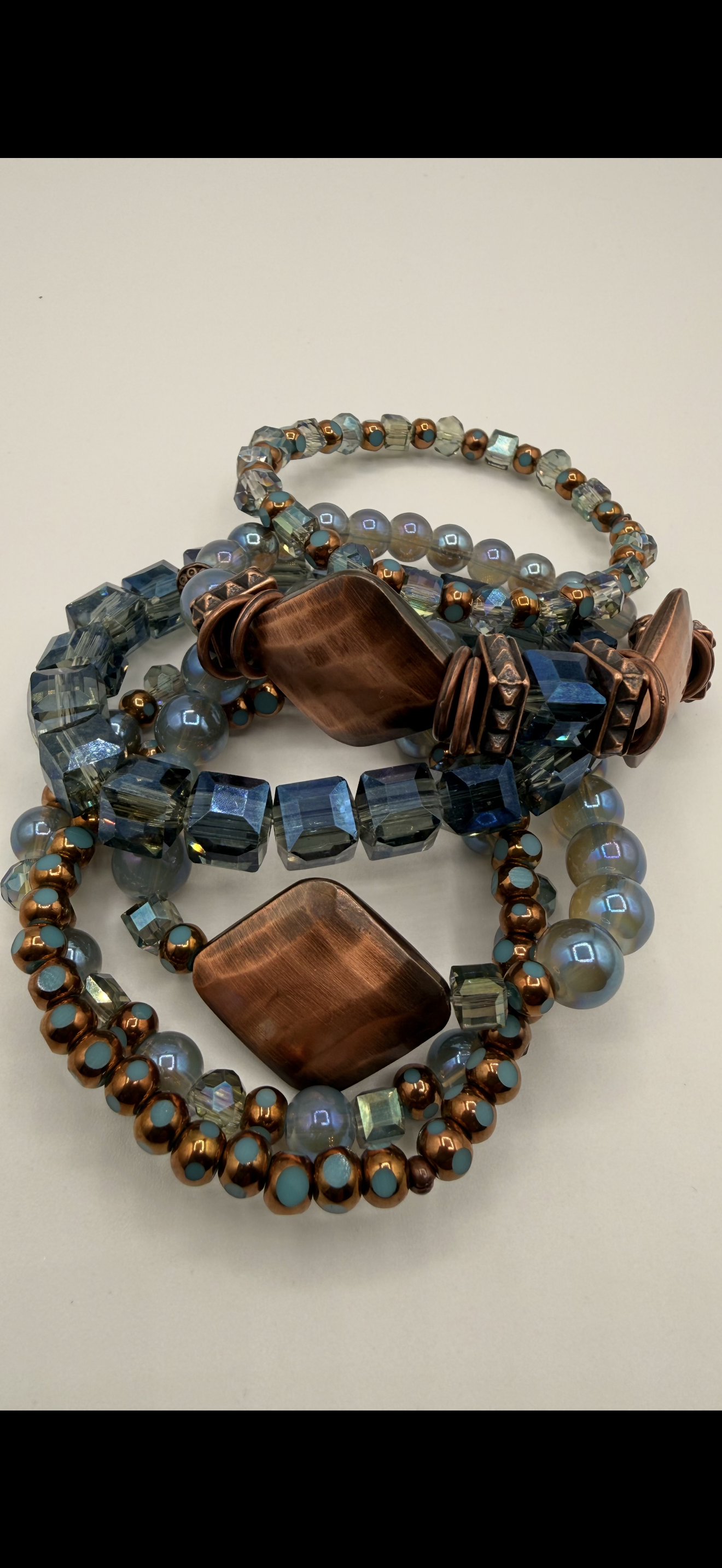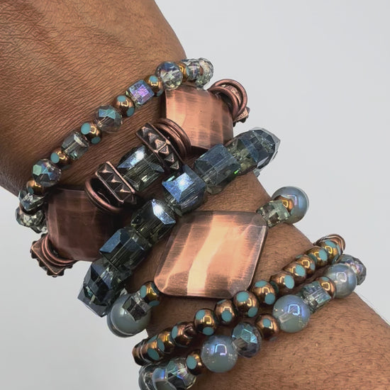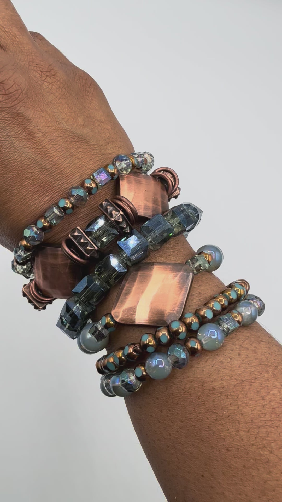 GORGEOUS Iridescent Blue Glass Beads with Copper Accents (6)