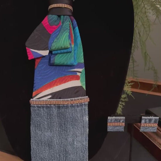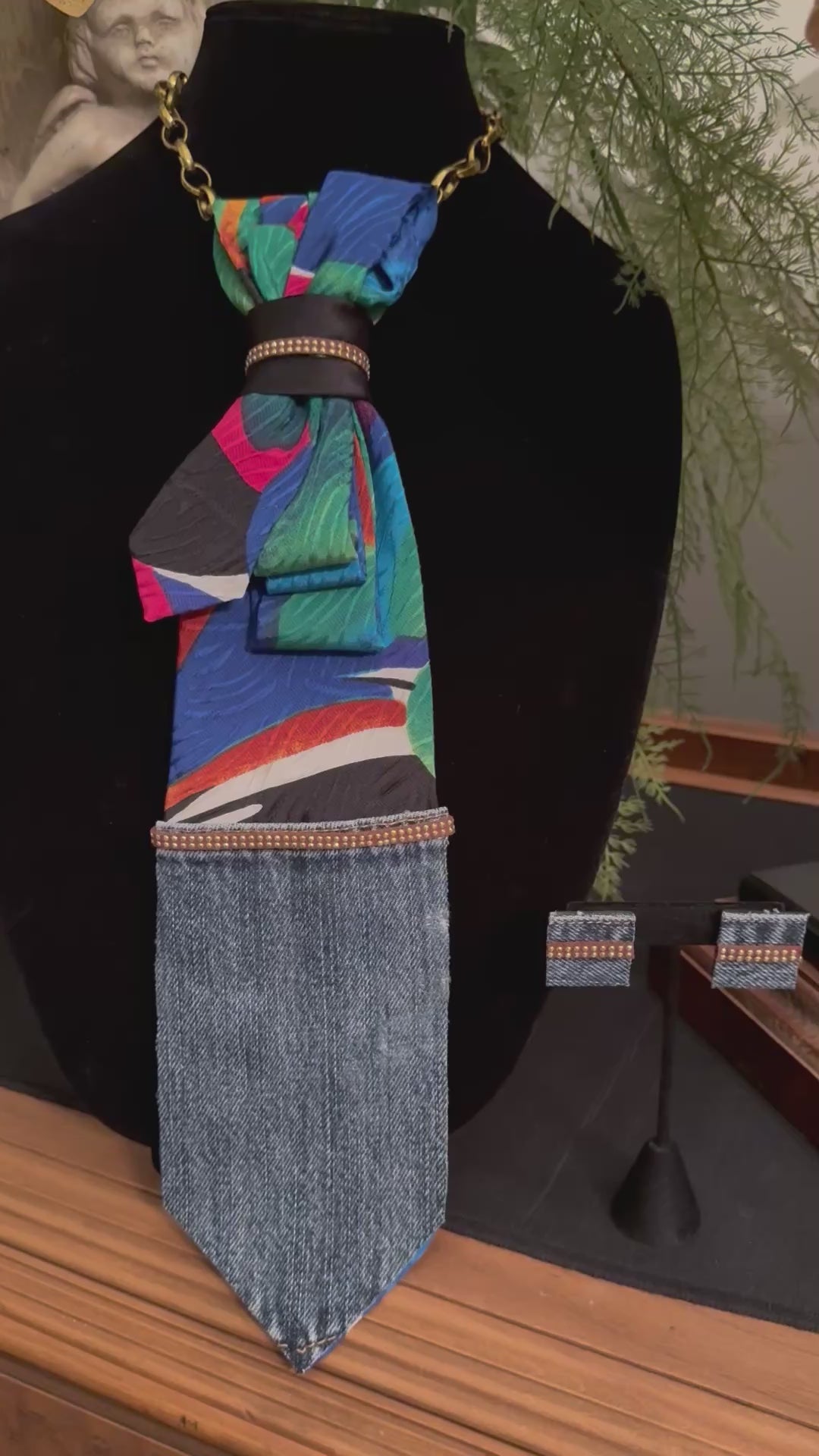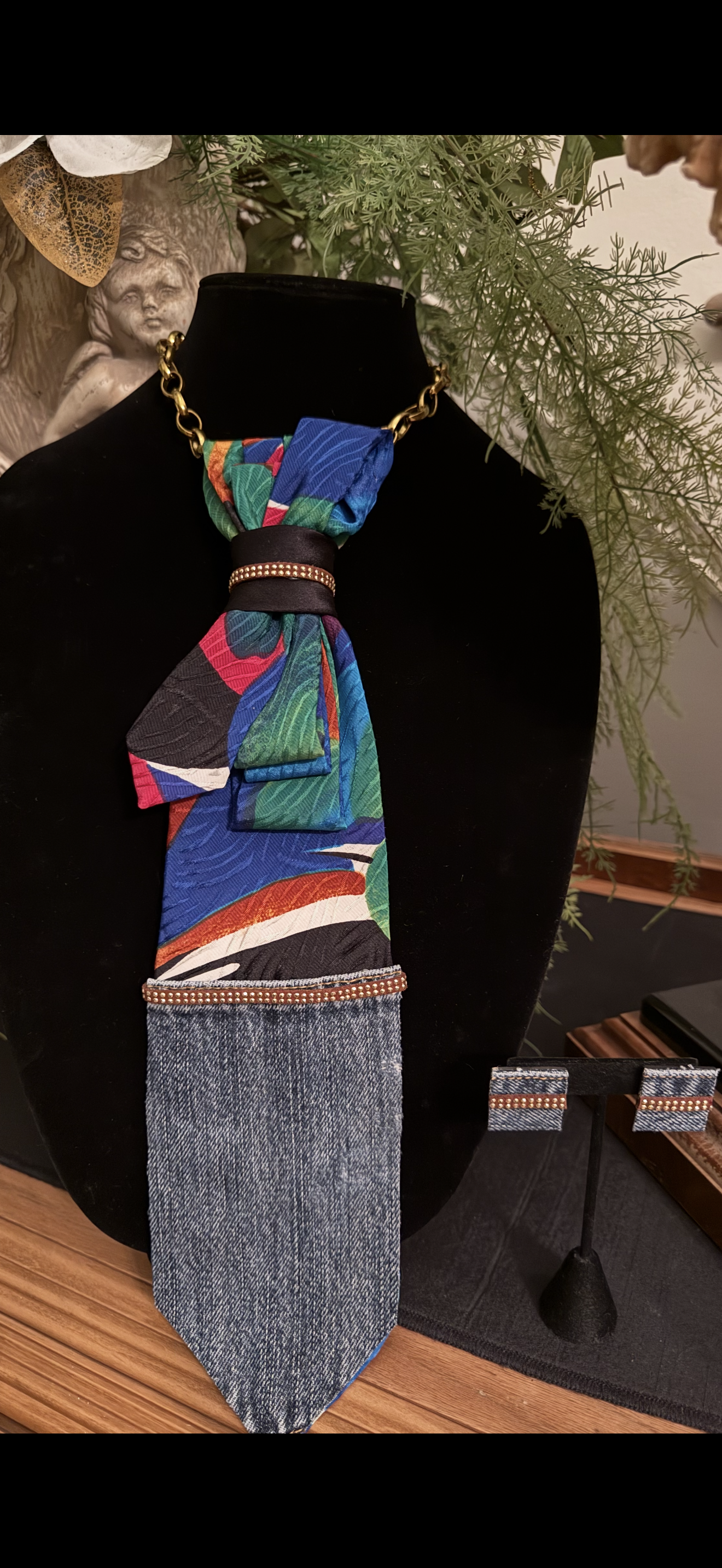 Half Denim Half Bright Vibrant Tropical Colors with Matching Earrings