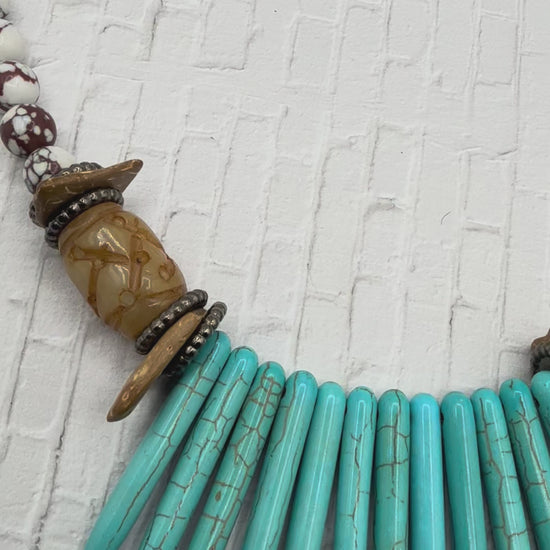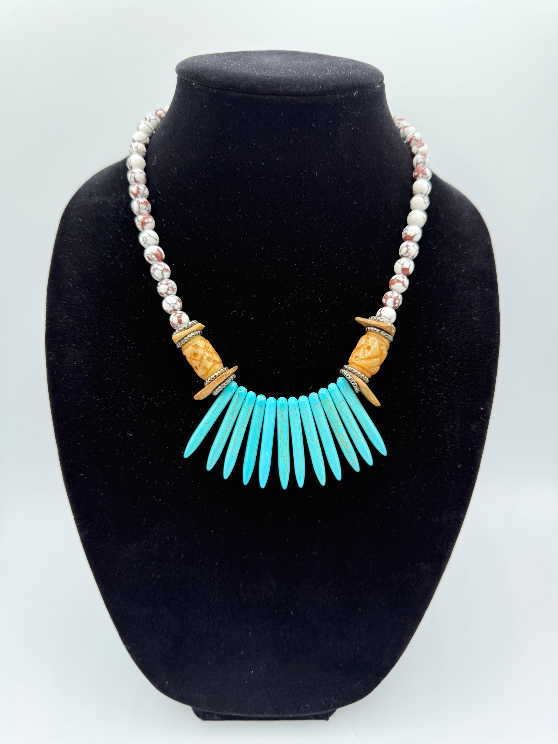 Brown and White Marbled Stone with Large Ornate Accent Beads,Coconut Shells and Howalite Spikes