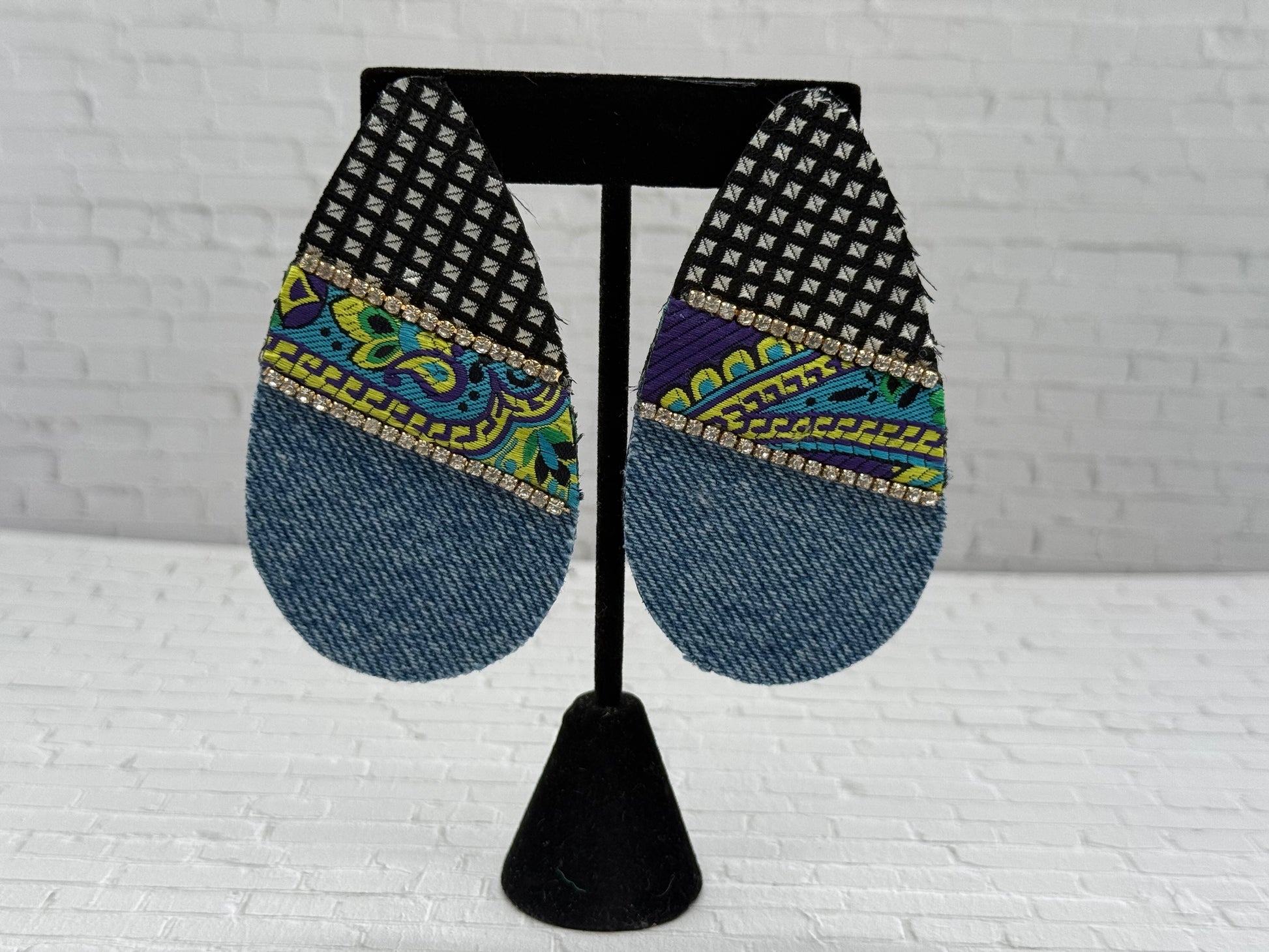 Large SUPER Lightweight Wood Hand Painted with Vibrant Fabric Accents