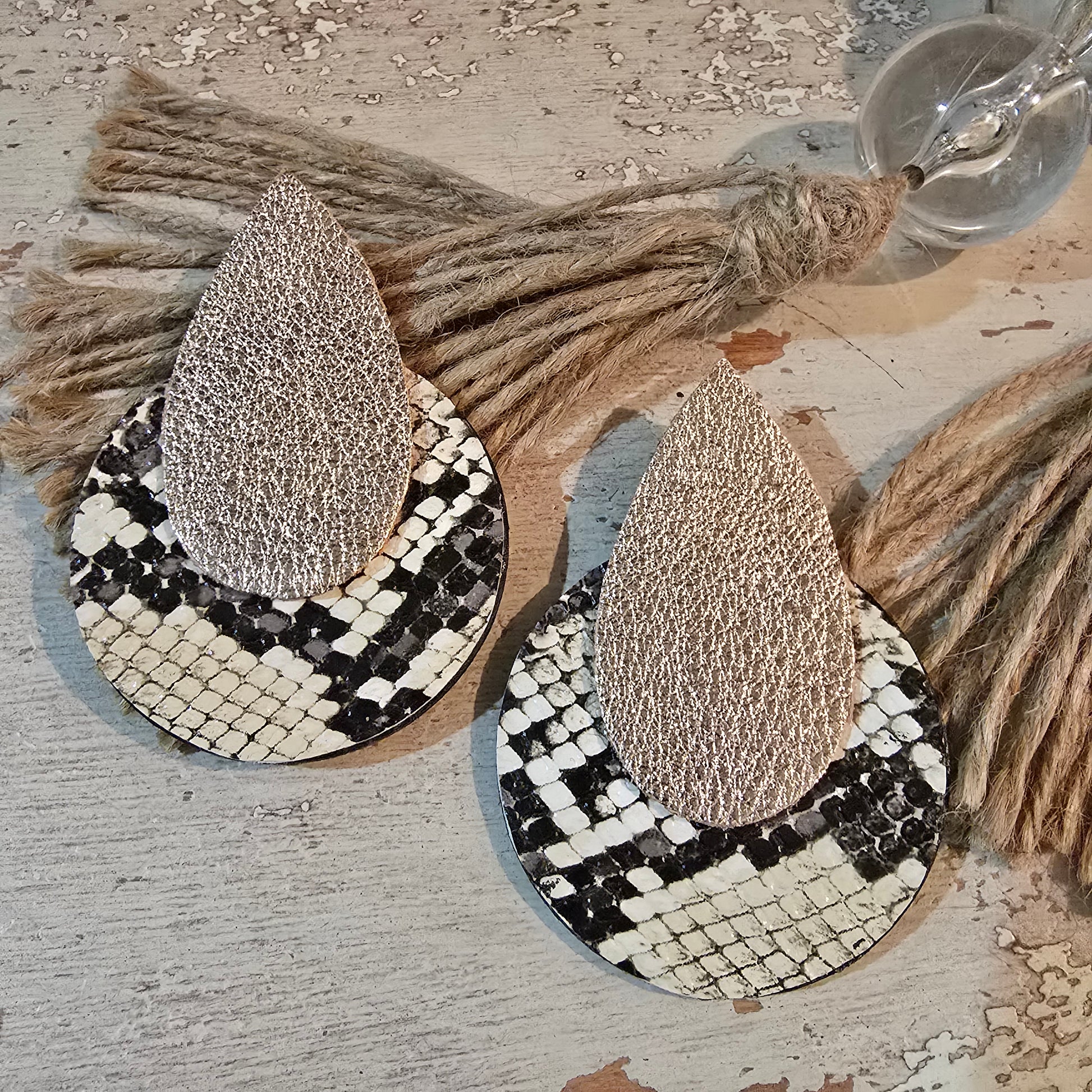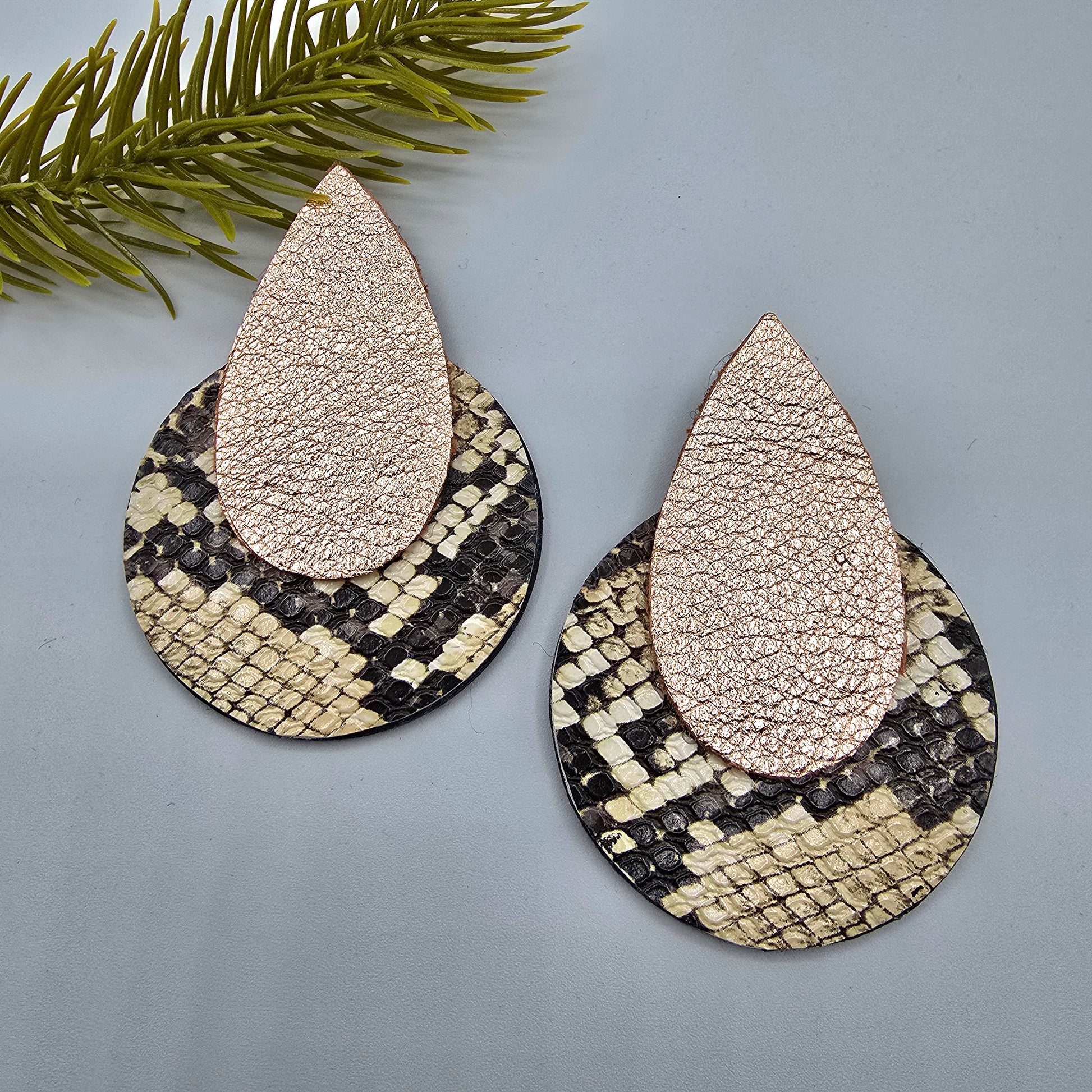 Large Wood with Snake Print and Rose Gold Teardrop LIGHT WEIGHT