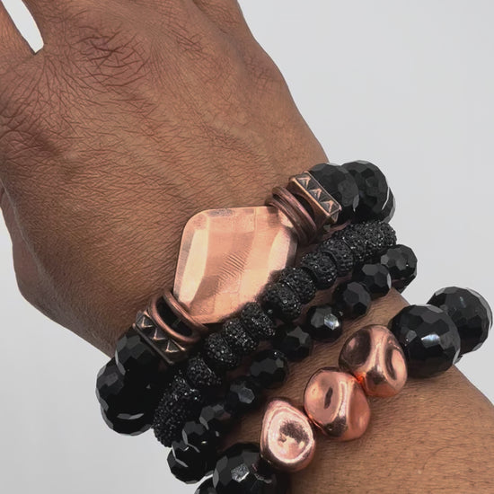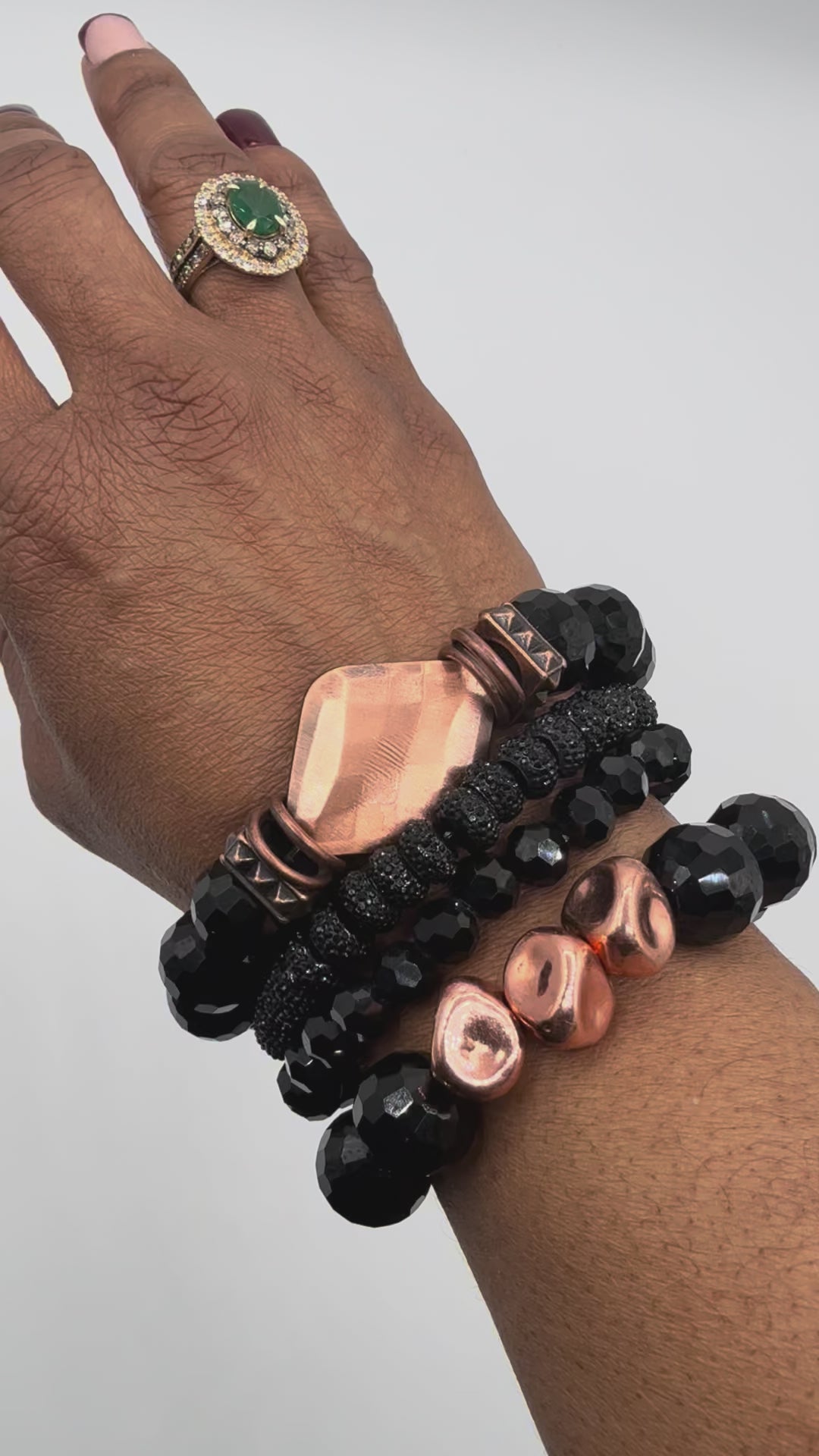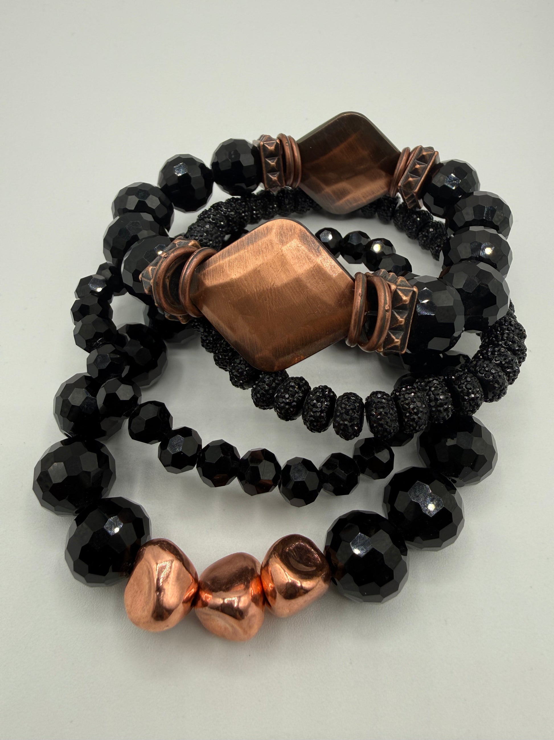 Beautiful Black Fauceted Glass Beads with Accents of Copper